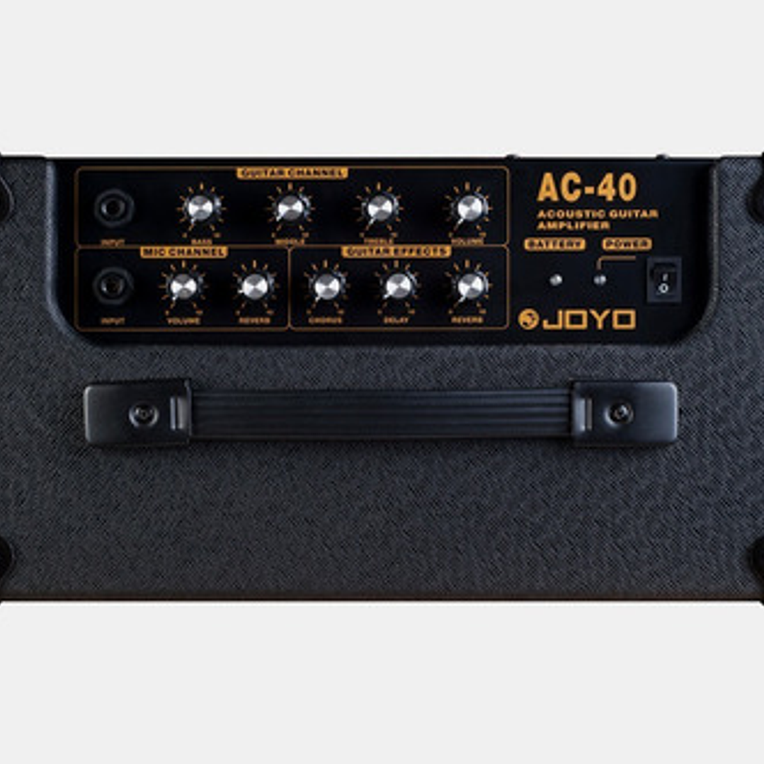 El amplificador ac£stico AC-40 est desarrollado sobre la base del popular AC-20. Aunque conserva la alta calidad de sonido, es m s potente y port til gracias a su bater¡a integrada y, por lo tanto, es una excelente opci¢n para actuaciones al aire libre. Su potencia de 40 W (RMS) puede cumplir f cilmente con los requisitos para peque¤os espect culos en vivo y se puede usar hasta 3 horas seguidas cuando est completamente cargada. Basado en el circuito DSP del AC-20, ofrece la misma claridad de sonido y sin duda satisfar las demandas de su amplificador.